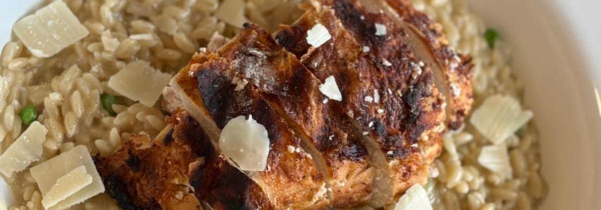 /in Diner ReceptenRecept: Creamy orzo met gegrilde kip